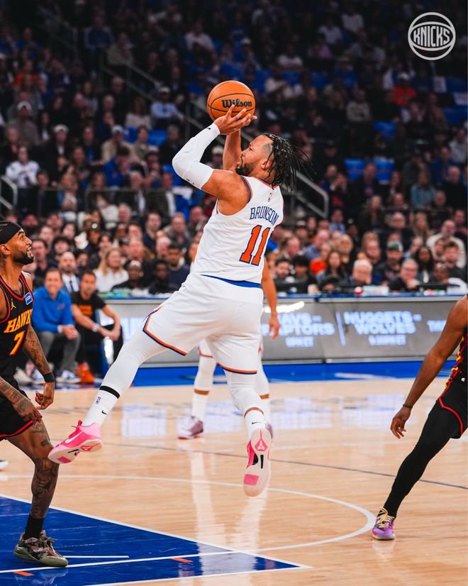 尼克斯队的布伦森得到28分、5个篮板和7次助攻,唐斯得到25分、8个篮板和4次助攻,阿奴诺比得到18分和8个篮板,布里奇斯得到11分,哈特得到11分、13个篮板和5次助攻。老鹰队的麦科勒姆得到26分和4个篮板,约翰逊得到23分和6个篮板,奥孔古得到19分和7个篮板,沃克得到17分和4次助攻,丹尼尔斯得到4分、9个篮板和11次助攻。